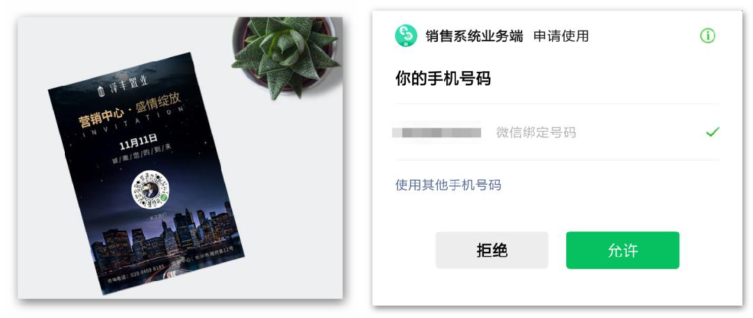 客户通过扫描投屏或各种物料上的小程序码,进入销售名片。凡是在销售名片内成功授权手机号的客户,可直接领取洗衣粉、食用油、购物卡等奖品。