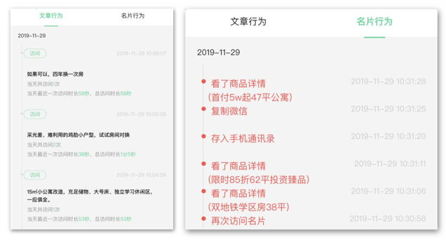 有购房意向的潜在客户看到专业的户型分析以及装修建议的内容后,会主动点击阅读,销售即可根据其访问轨迹,预判客户可能的偏好,主动以房产区位因素、优惠政策以及小区便利设施等角度切入激发客户兴趣。