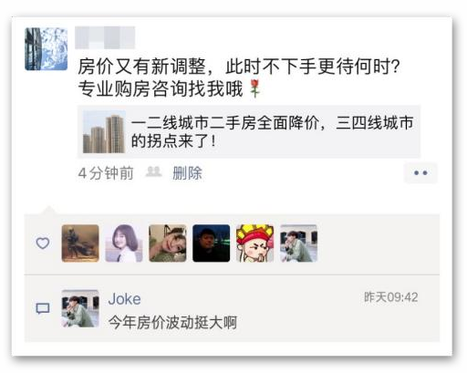 优质的内容自带高传播属性,善于利用内容传播,会为销售带来精准的客群信息和线索。泽丰置业硬性规定销售定时将销售系统房产行业及泽丰置业相关资讯转发至朋友圈,利用“房价调整”“限时促销”等标题吸引客户点击。